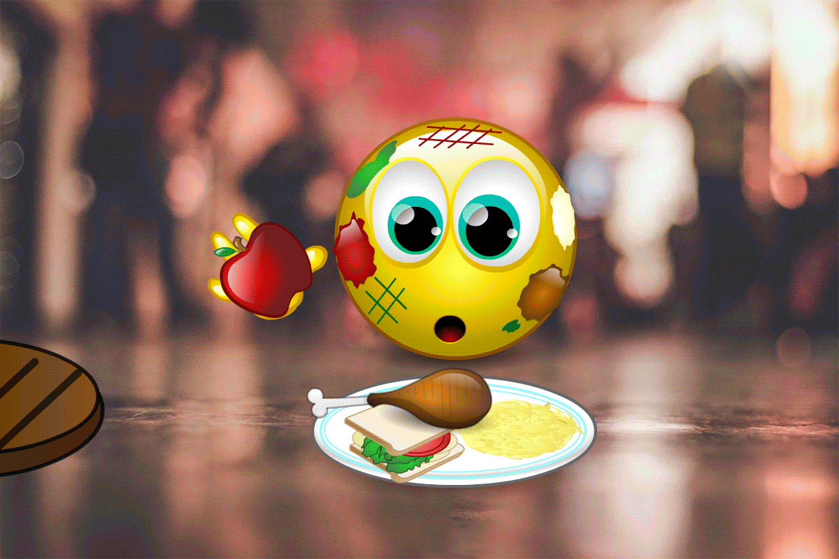 Animation & Photography: Illustrated and animated this "food fight" emoji for Smiley Central.
